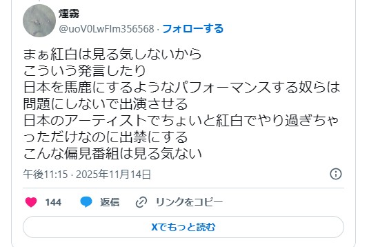 そんな戦後80年というセンシティブな年の紅白に、過去に「原爆を想起させる」として批判された投稿をしたメンバーがいるグループが選出されたことで、