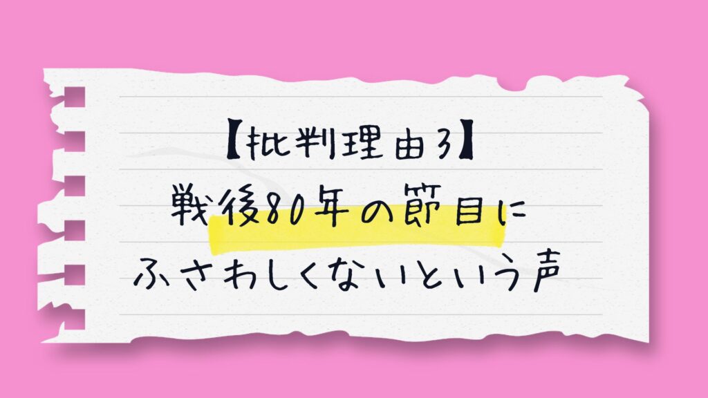戦後80年という重要な節目だからこそ、出演者の選定には慎重さが求められます。