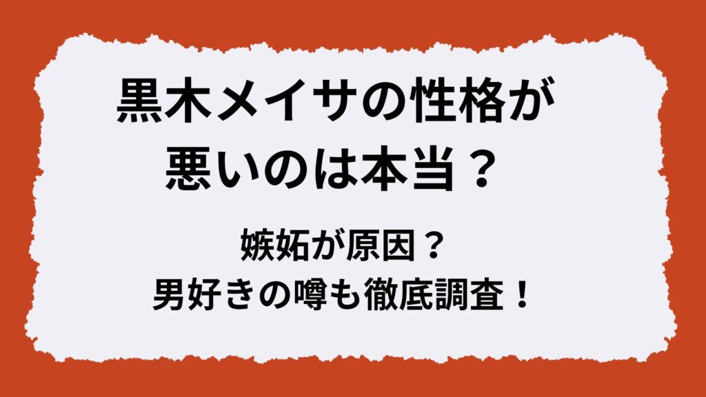 クールビューティの代表格として長年愛され続けている黒木メイサさん。 しかし、ネット上では「性格が悪い」「男好き」といった噂もさかやかれています。 これらの噂は... -