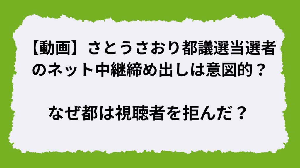 【動画】さとうさおり都議選当選者のネット中継締め出しは意図的?なぜ都は視聴者を拒んだ?
