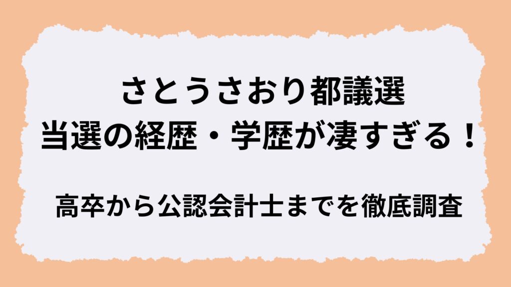 2025年6月の東京都議選で、千代田区という激戦区で無名の公認会計士が平愛梨の弟を破って当選する「奇跡」が起きました。 その主役がさとうさおり(佐藤沙織里)氏です... -