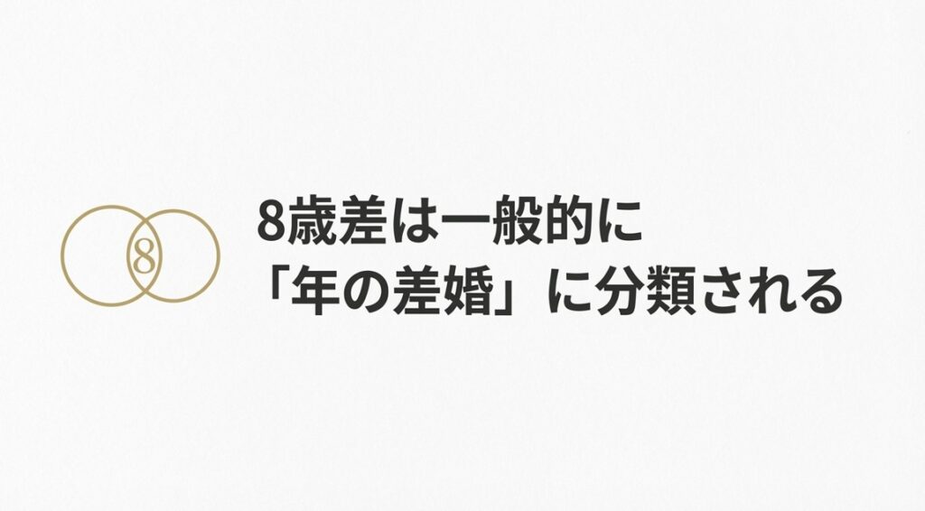 - 日本の夫婦の平均年齢差は2〜3歳なので、8歳差は「年の差婚」に該当する