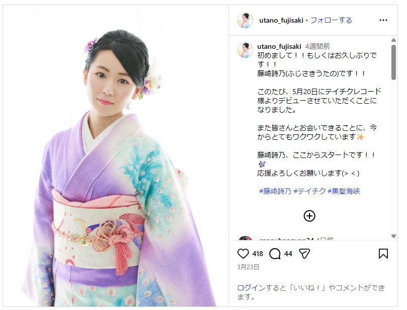 (出典:藤崎詩乃 Instagram 公式アカウント|参照:プロフィール欄「ふじさきうたの」)
