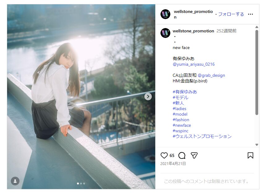 広島のモデル事務所「ウェルストンプロモーション」のSNS投稿では、2020年頃(当時小学6年生)に「有保ゆみあ」という名前で活動していた記録が残っています。