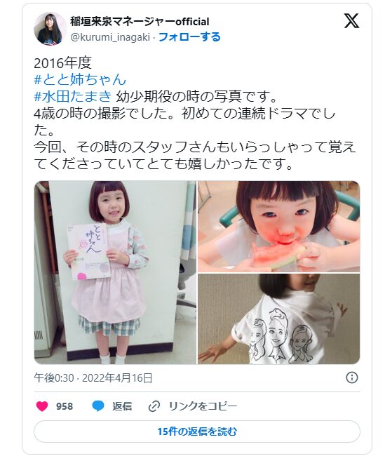 研音は、多くの人気俳優が所属する大手芸能事務所で、稲垣来泉さんの活動の幅がさらに広がることが期待されています。