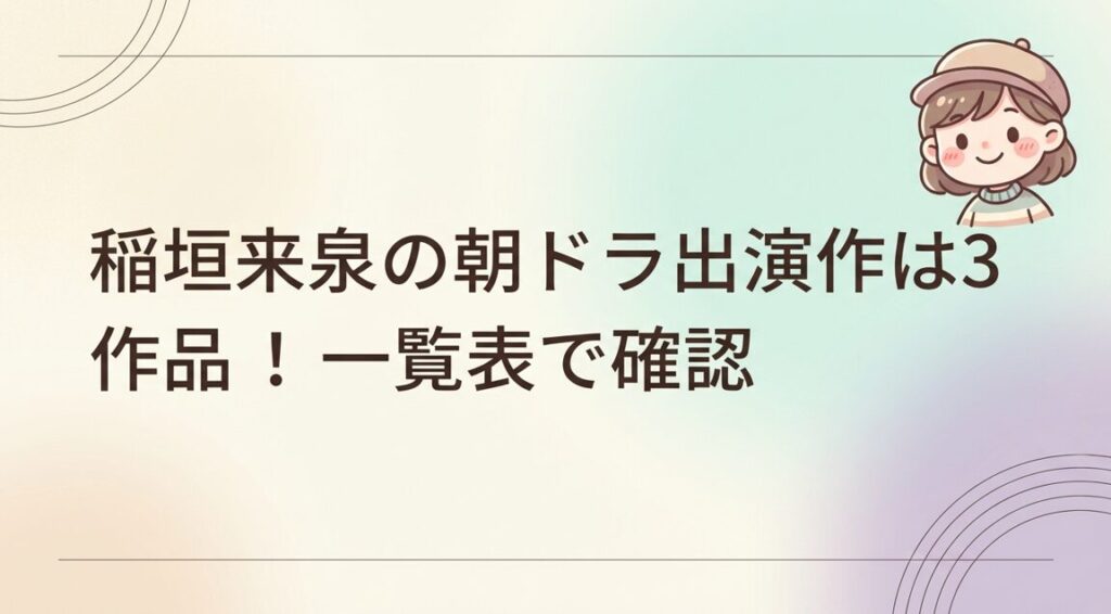 以下の表で、稲垣来泉さんの朝ドラ出演作を一覧にまとめました。