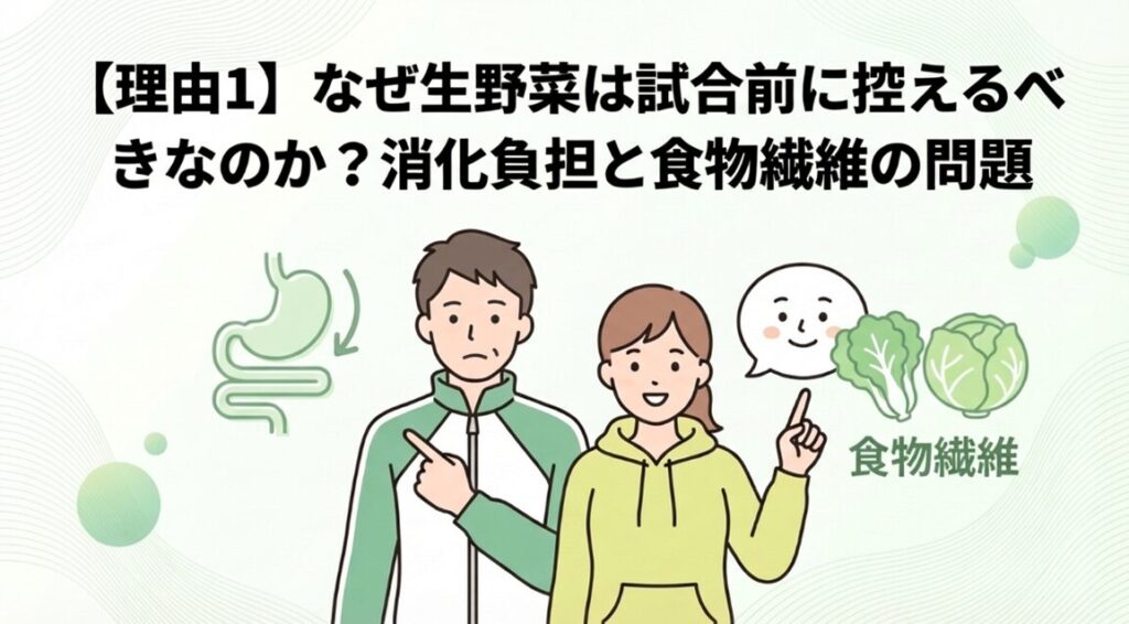 【理由1】なぜ生野菜は試合前に控えるべきなのか?消化負担と食物繊維の問題