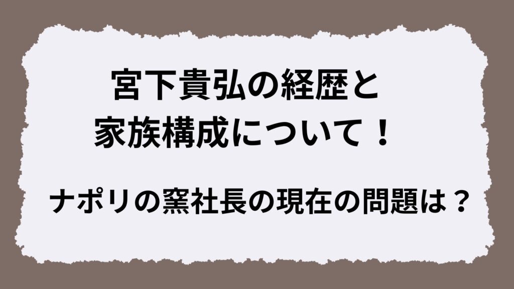 宮下貴弘の経歴と家族構成について!ナポリの窯社長の現在の問題は?