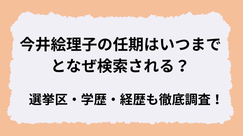 今井絵理子の任期はいつまでとなぜ検索される?選挙区・学歴・経歴も徹底調査!