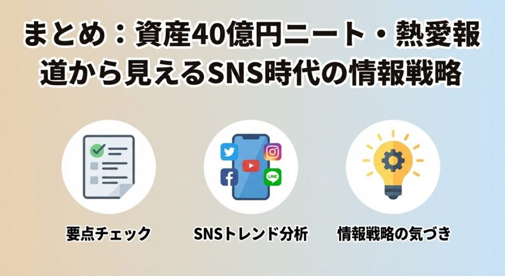 まとめ:資産40億円ニート・熱愛報道から見えるSNS時代の情報戦略