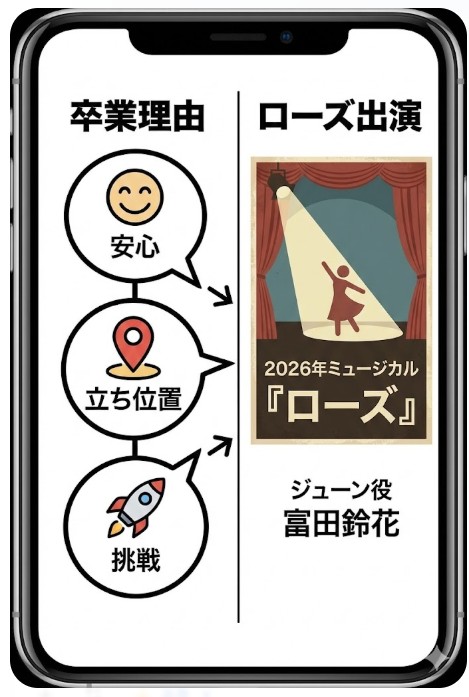 この記事では、卒業までの時系列→卒業理由→そしてミュージカル『ローズ』出演決定までを一気に整理します。